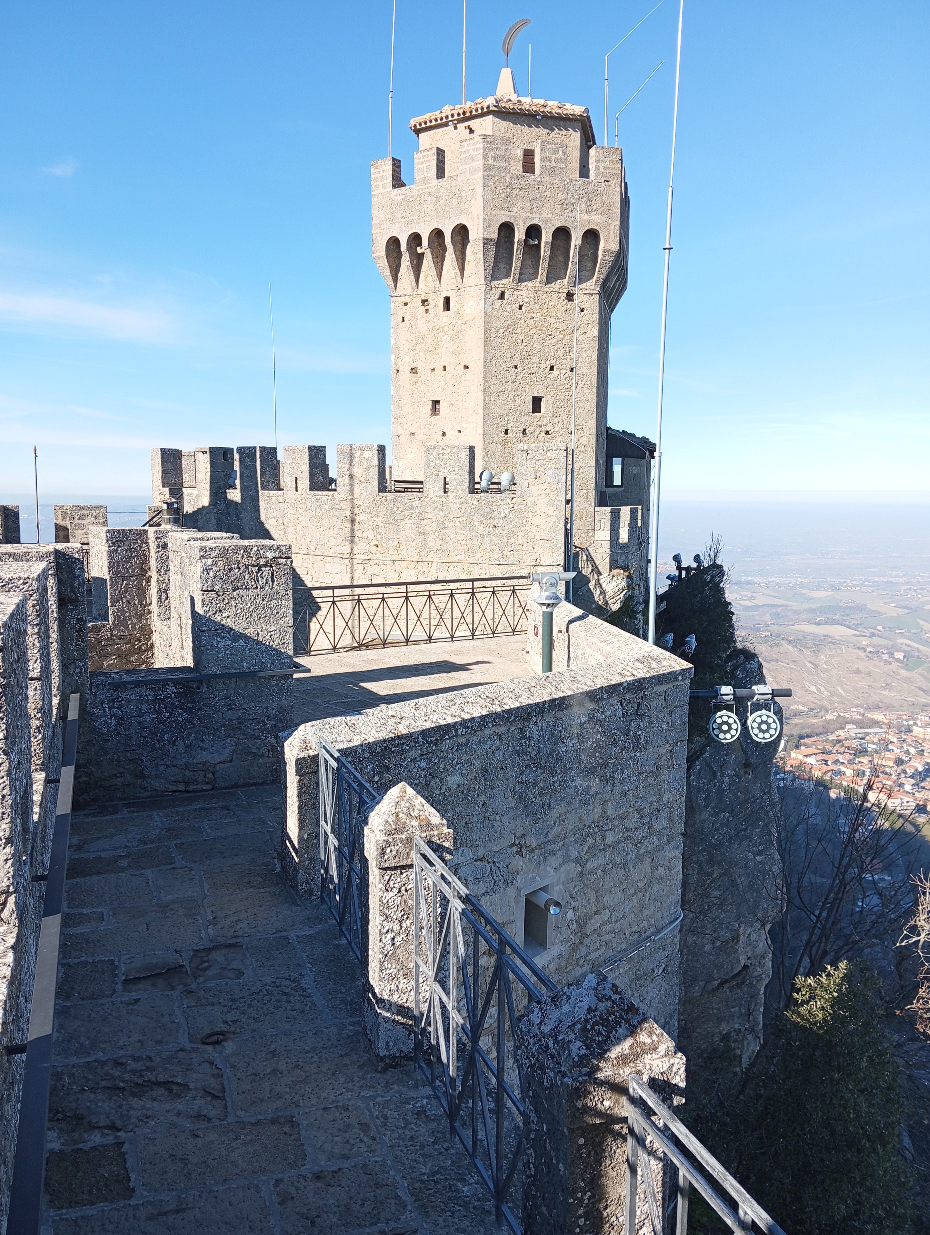 The imposing Three Towers of San Marino, perched dramatically on Mount Titano